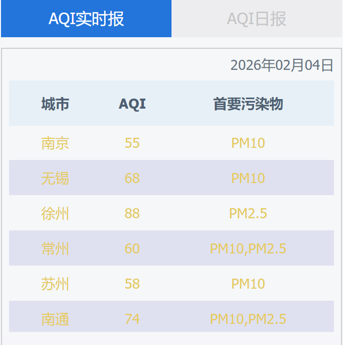 江苏省13个设区市2026年02月04日空气质量情况