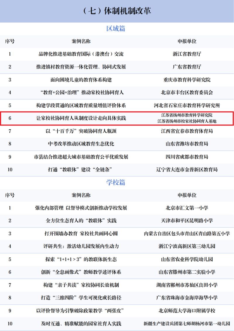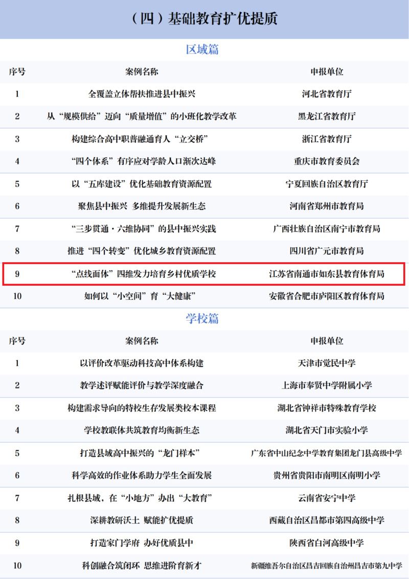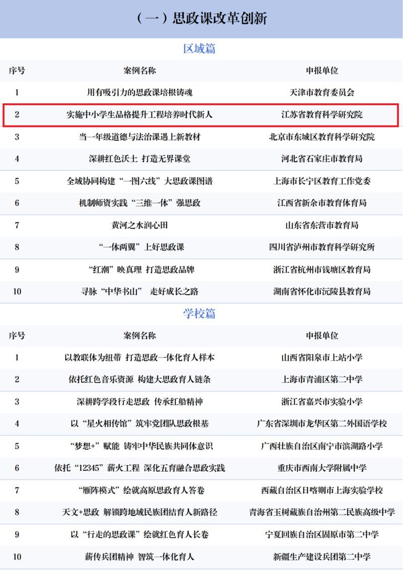 此次,江苏共有9个案例入选,涉及中小学生品格提升、乡村优质学校培育、人文涵养与工程教育相结合的育人模式探索、人工智能教育、家校社协同育人、孤独症儿童教育等多个领域。