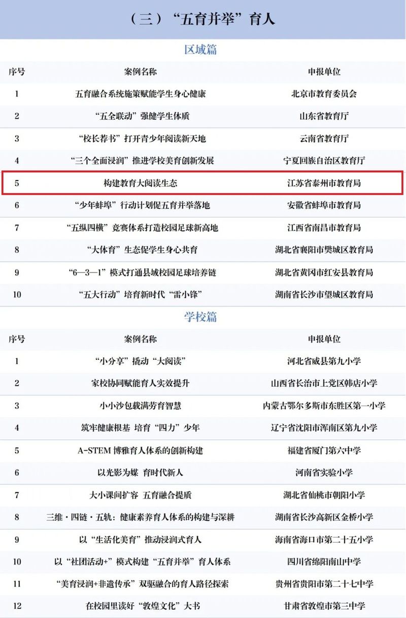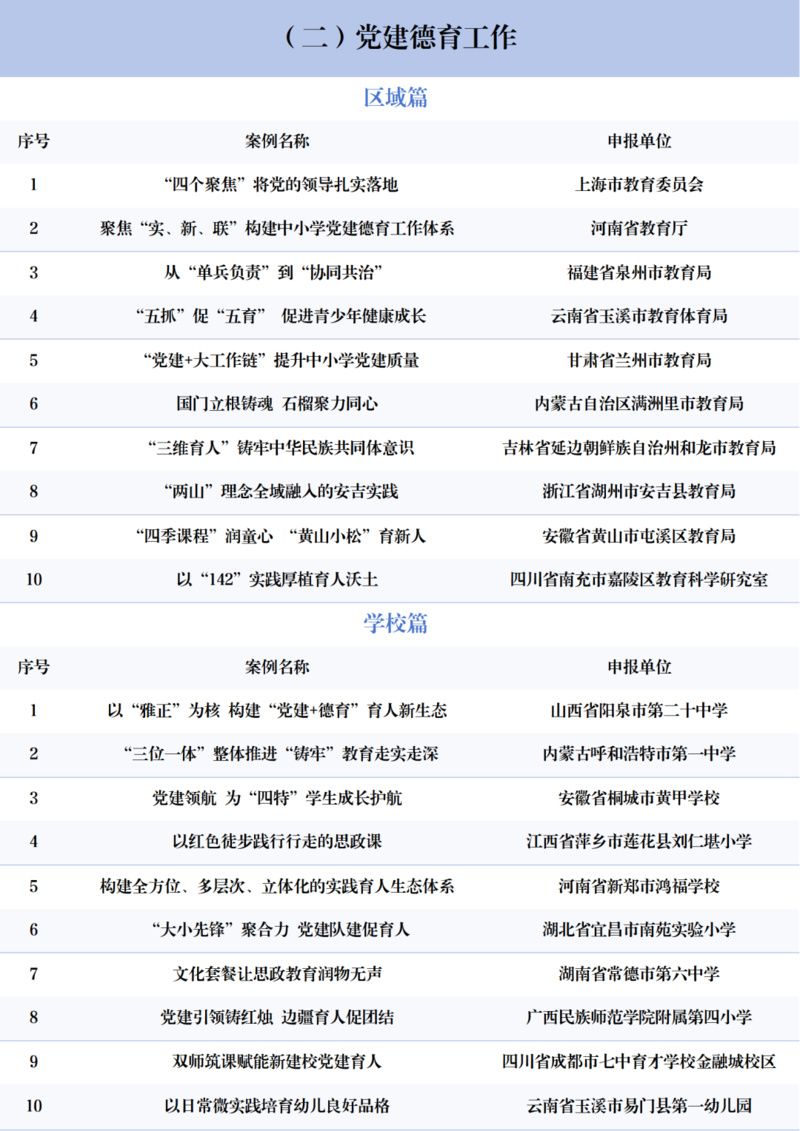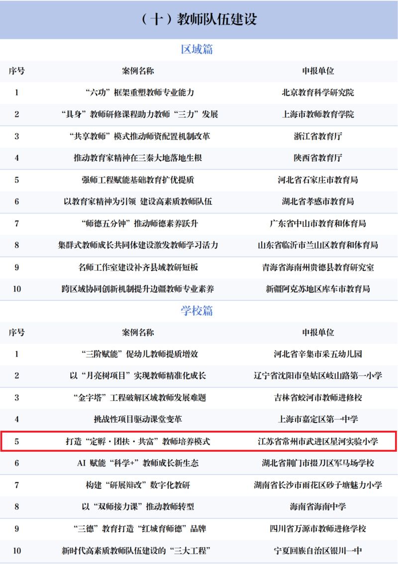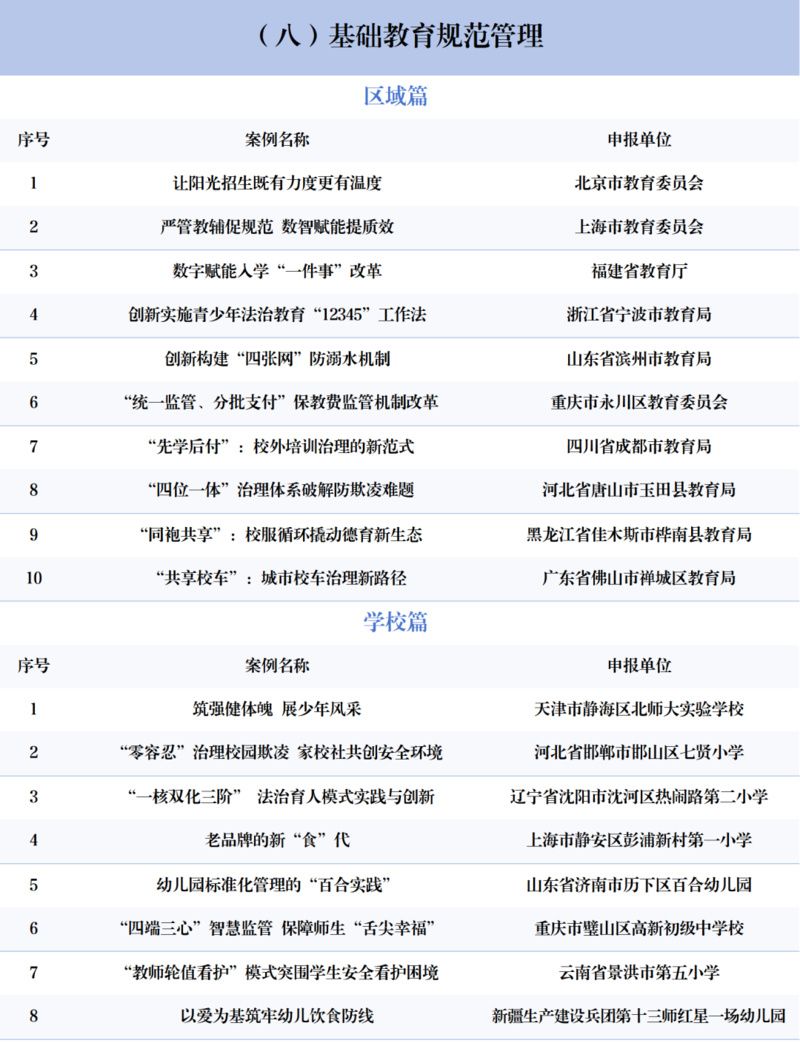 交汇点讯 记者留意到,日前,2025年中国基础教育创新案例正式发布。此次发布的200个基础教育创新案例从全国申报的10000余个案例中评选而出,分为思政课改革创新、党建德育工作、“五育并举”育人、基础教育扩优提质、教育教学改革、人工智能教育、体制机制改革、基础教育管理规范、基础教育条件保障和教师队伍建设10个大类,囊括了100个区域案例和100个学校案例。