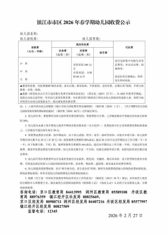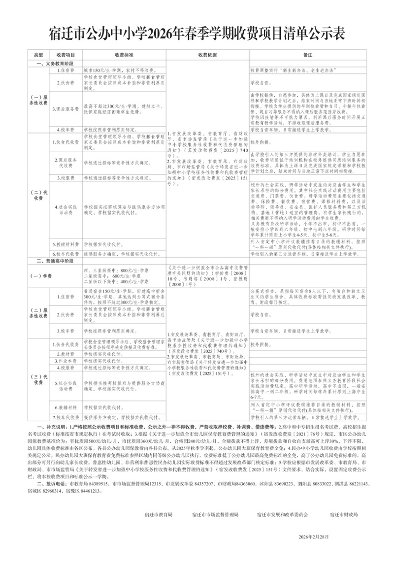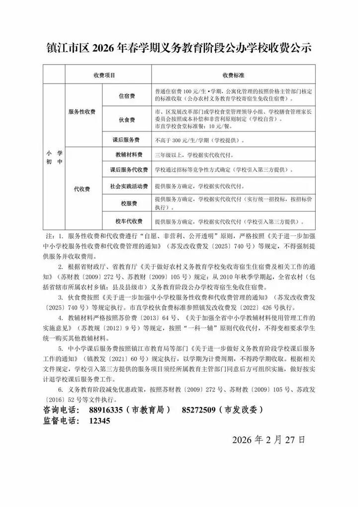 交汇点讯 2026年春季学期即将开启,江苏宿迁、无锡、镇江等多地发布中小学(幼儿园)新学期收费标准。@江苏家长,快去看看新学期要给娃准备多少“米”?