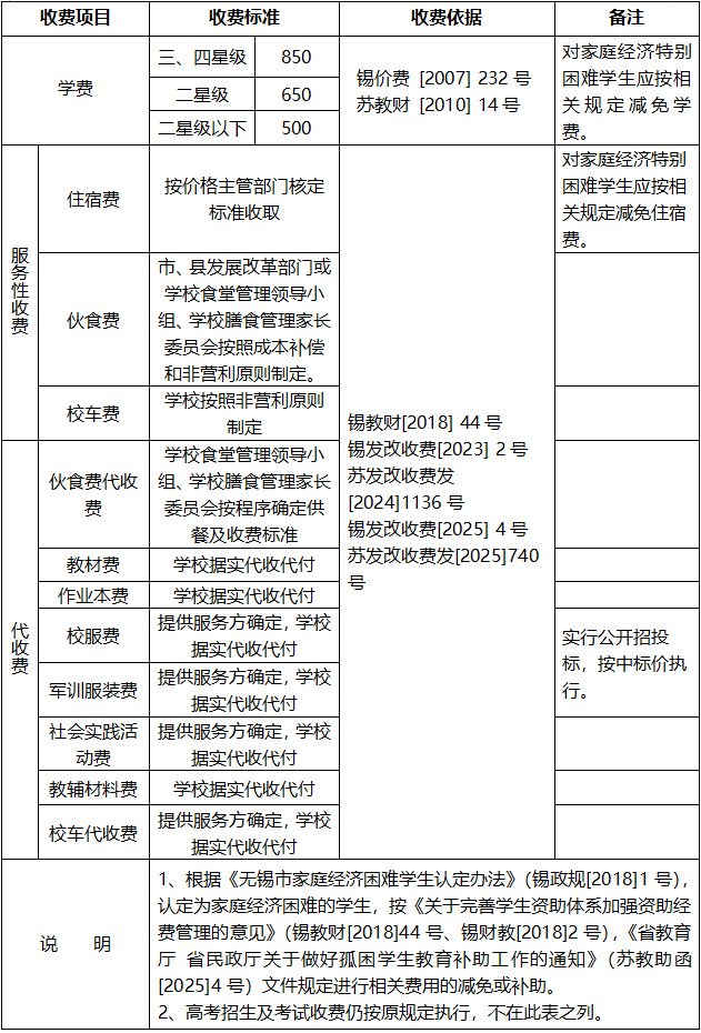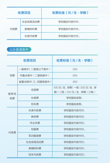 4、无锡市区公办普通高中收费表(单位:元/生·学期)