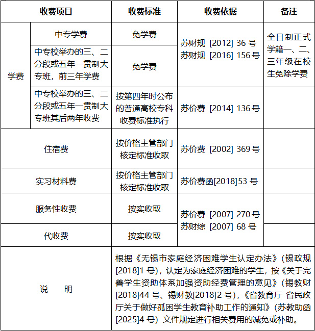 5、无锡市公办中等职业学校收费表(单位:元/生·学年)
