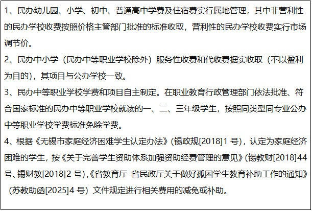 6、无锡市区民办中小学(幼儿园)收费说明