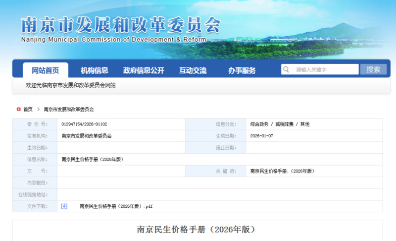 近日,南京市发改委发布了《南京民生价格手册(2026版)》。