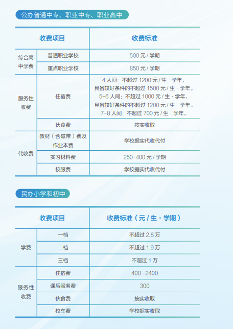 据了解,各地对幼儿园、义务教育阶段公办学校、公办普通高中、公办中等职业学校的收费项目、收费标准、收费依据等内容进行梳理完善,做到公示格式、收费标准、收费政策、减免政策、监督电话“五统一”,并在各地发改部门官方网站、教育部门官方网站、学校收费窗口实施“三公开”,主动接受社会监督。