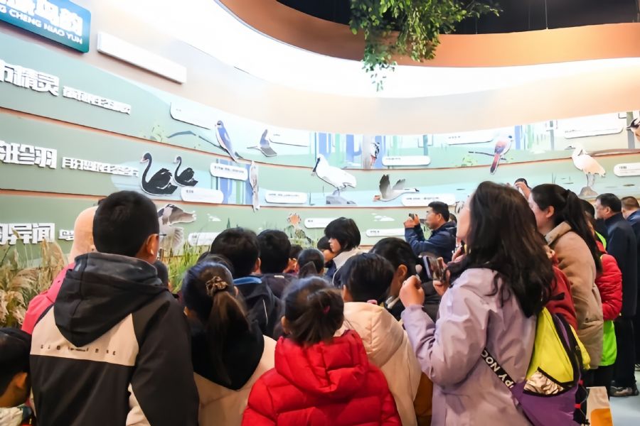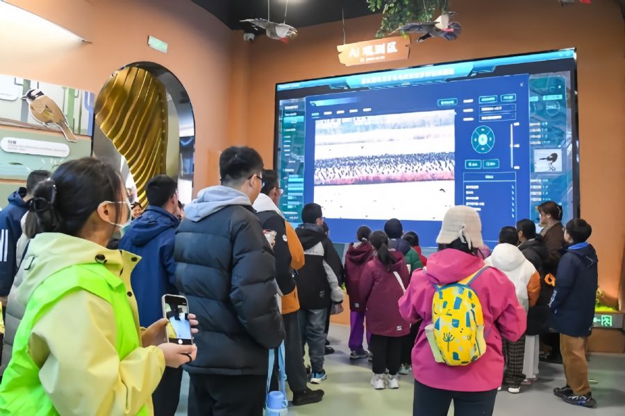 “截至现在,这个系统已经识别251种鸟啦,还有6种是国家二级保护动物呢!”跟随工作人员的讲解,孩子们踮起脚尖,盯着屏幕里翩跹的水鸟,眼神里满是好奇。孩子们在惊叹于科技力量的同时,也对生物多样性保护有了更深的理解。