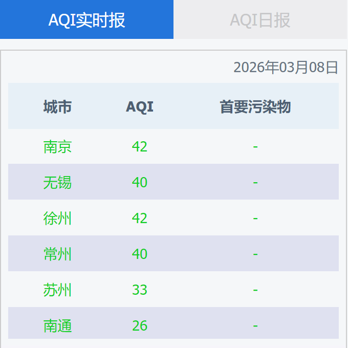 江苏省13个设区市2026年03月08日空气质量情况