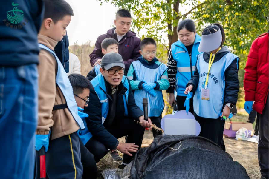菌园里一派忙碌景象:孩子们又蹲回自己的菌园旁,有人拨开覆盖物检查菌丝有没有再蔓延一点,有人小心地喷水保湿;家长们也蹲在一旁,和孩子商量着何时再来看看。蘑菇还没长出来,但孩子们坚信脚下那张看不见的网真的在动,他们可以静待湿地深处的“开花结果”。