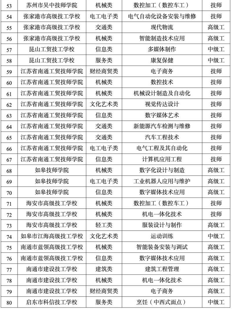 记者从江苏省人社厅了解到,全省现有技工院校124所,在校生25.5万人,每年培养中级工以上学制教育毕业生约6万人,开展各类社会培训超50万人次。为应对新一轮科技革命和产业变革,江苏将基于产业发展需求,持续建立健全专业设置与动态调整机制,引导技工院校优先发展新兴专业,加快发展急需紧缺专业,改造升级传统专业,同时完善合理退出机制,对供给过剩、就业率低、职业岗位消失的专业逐步撤并淘汰,推动形成紧密对接、精准契合产业链、创新链的专业体系。
