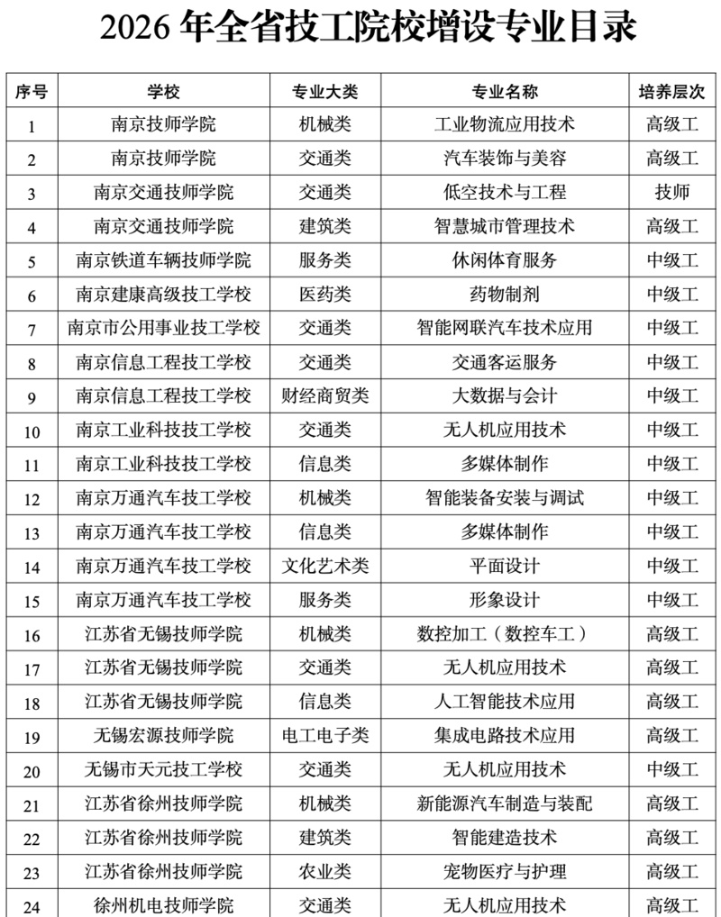 交汇点讯 对于正站在升学路口的学生们来说,今年江苏技工院校的专业选择更加丰富了。随着公示期结束,全省64所技工院校共新增157个专业,为同学们带来了更多元的选择和更清晰的就业方向。