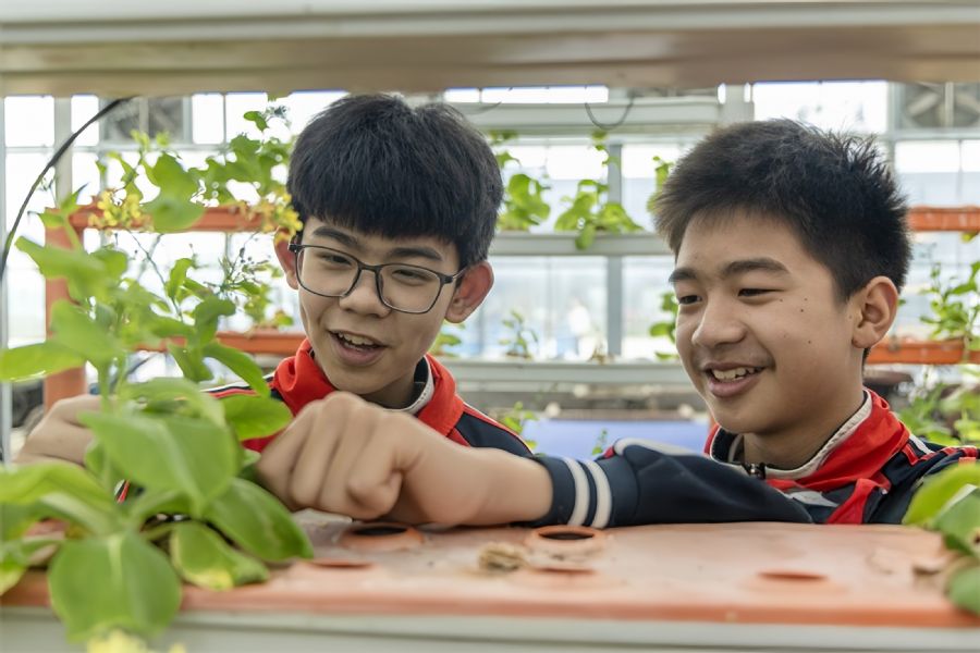 4月16日,泗洪县实验学校组织学生走进农业研学基地开展农耕文化研学活动。学生学习现代农业知识,参与劳动实践。李佳 摄 视觉江苏网供图