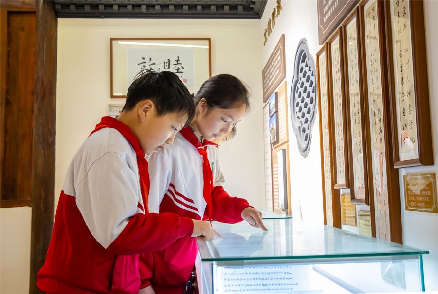 4月10日,南通市通州区西亭小学组织学生走进张謇祖居开展研学活动,参观陈列展品,聆听张謇事迹。翟慧勇 摄 视觉江苏网供图