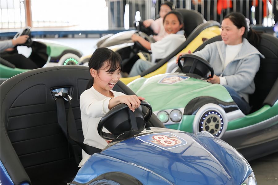 4月15日,泗洪县瑶沟实验学校开展趣味研学活动,组织学生来到宿迁市牛角村MOMO乐园,体验脚蹬赛车、弹跳蹦蹦床、碰碰车等项目,收获快乐,强身健体。刘烨 摄 视觉江苏网供图