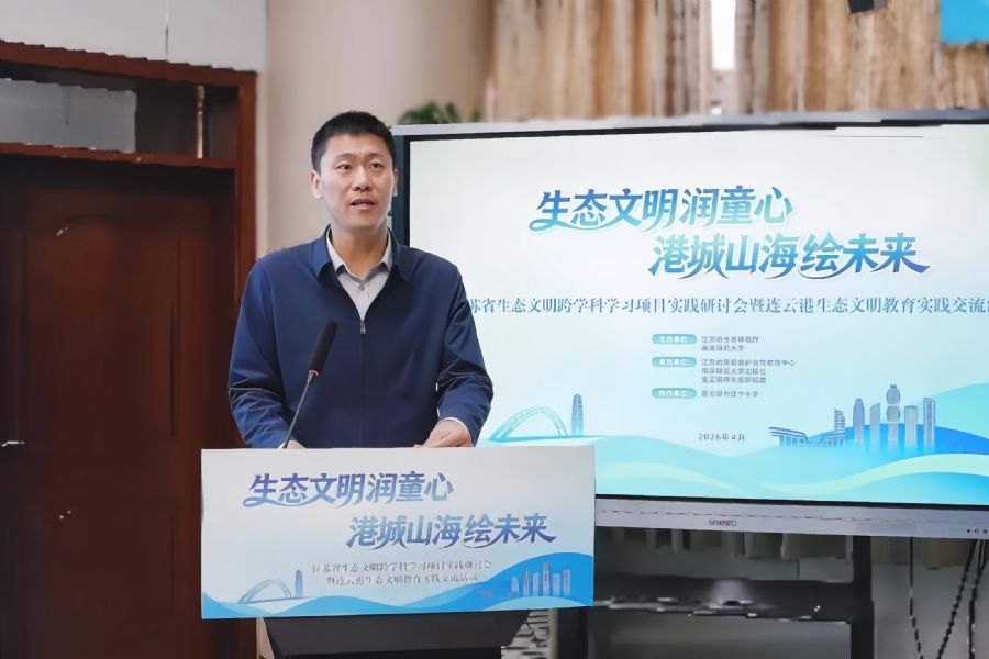 春日港城,山海拥翠。4月22日,“生态文明润童心 港城山海绘未来”江苏省生态文明跨学科学习项目实践研讨会暨连云港生态文明教育实践交流活动在连云港市建宁小学举行。本次活动由江苏省生态环境厅、南京师范大学主办,江苏省环境保护宣传教育中心、南京师范大学出版社、连云港市生态环境局共同承办,生态文明跨学科学习项目学校代表、连云港市生态环境系统、教育系统齐聚一堂,系统展示了全国首套《生态文明跨学科学习(小学版)》丛书近一年推广实践成果,推动生态育人从试点探索走向全域深耕,让绿色理念在江苏校园落地生根、蔚然成风。