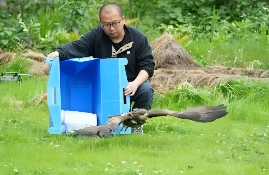 而在今年爱鸟周启动仪式现场,又一只康复的黑鸢——黑鸢13号,佩戴追踪装置后成功放归。